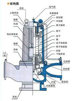 屏蔽泵的結(jié)構(gòu)如下圖所示。屏蔽泵又被稱為屏蔽泵和電機一體化結(jié)構(gòu),屏蔽泵配件主要是由泵體、葉輪、石墨軸承、連接體、轉(zhuǎn)子、定子、屏蔽套、電機殼等構(gòu)成。屏蔽泵為臥式結(jié)構(gòu)和立式結(jié)構(gòu),本公司生產(chǎn)的屏蔽泵為立式屏蔽泵結(jié)構(gòu)。進口與出口位于同一水平軸線上,進出口徑規(guī)格相同可以像閥門一樣安裝在管路的任何部位上,拆卸與安裝比較方便,節(jié)省占地面積。屏蔽泵利用聯(lián)接體和電機構(gòu)成一體,電機轉(zhuǎn)子定子各有屏蔽套進行密封隔離。軸承使用泵送液體作為潤滑劑和冷卻液,液體在電機內(nèi)部進行循環(huán),對電機可以起到冷卻作用,對軸承起到潤滑作用。屏蔽泵設(shè)有底座能直接安裝在地基上,也能用隔振墊安裝或者帶聯(lián)接板加裝隔振器。