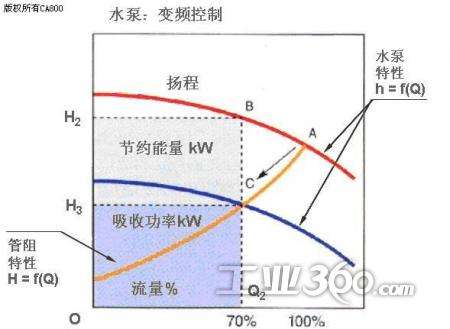 ②由于某些大型循環(huán)水泵的規(guī)劃參數(shù)而被適應(yīng)于某些循環(huán)水泵系統(tǒng),即所謂的“大馬拉小車”,它在這種情況下具有一定的作用,依賴于泵的頻率來改變泵馬達(dá)的頻率降低泵的轉(zhuǎn)速,調(diào)整泵的Q和H值,并使泵的實際流量值低于泵的額外流量值,以達(dá)到節(jié)能的目的。