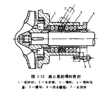 等零件組成,如圖1-12所示。填料密封依靠填料與軸套的緊密接觸以及填料中的潤(rùn)滑劑被